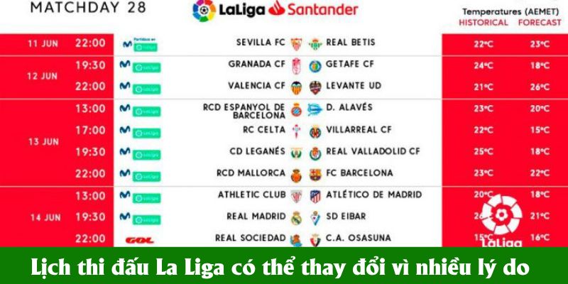 Lịch thi đấu La Liga có thể thay đổi vì nhiều lý do Lịch thi đấu La Liga có thể thay đổi vì nhiều lý do