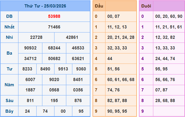 Kết quả Xổ Số Miền Bắc 25-03-2026: