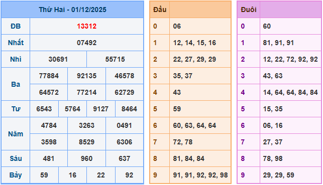 Kết quả Xổ Số Miền Bắc 1-12-2025: